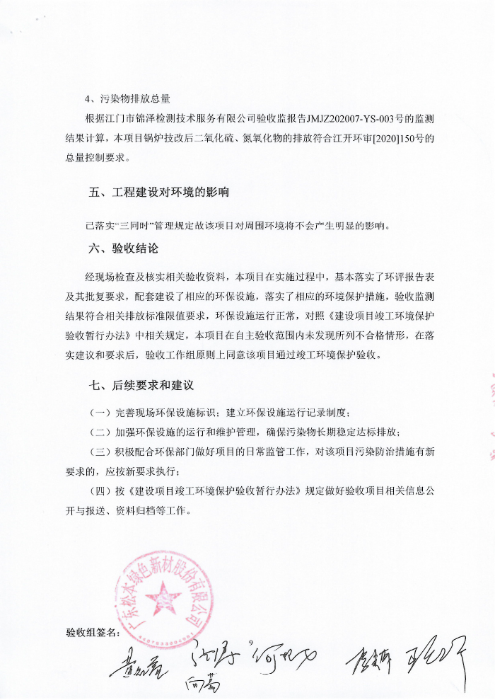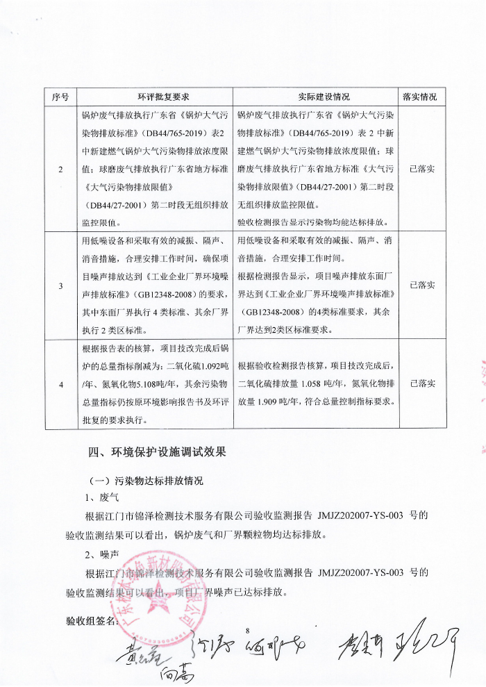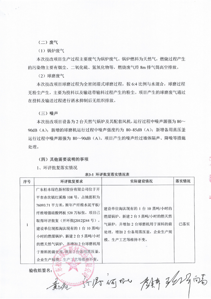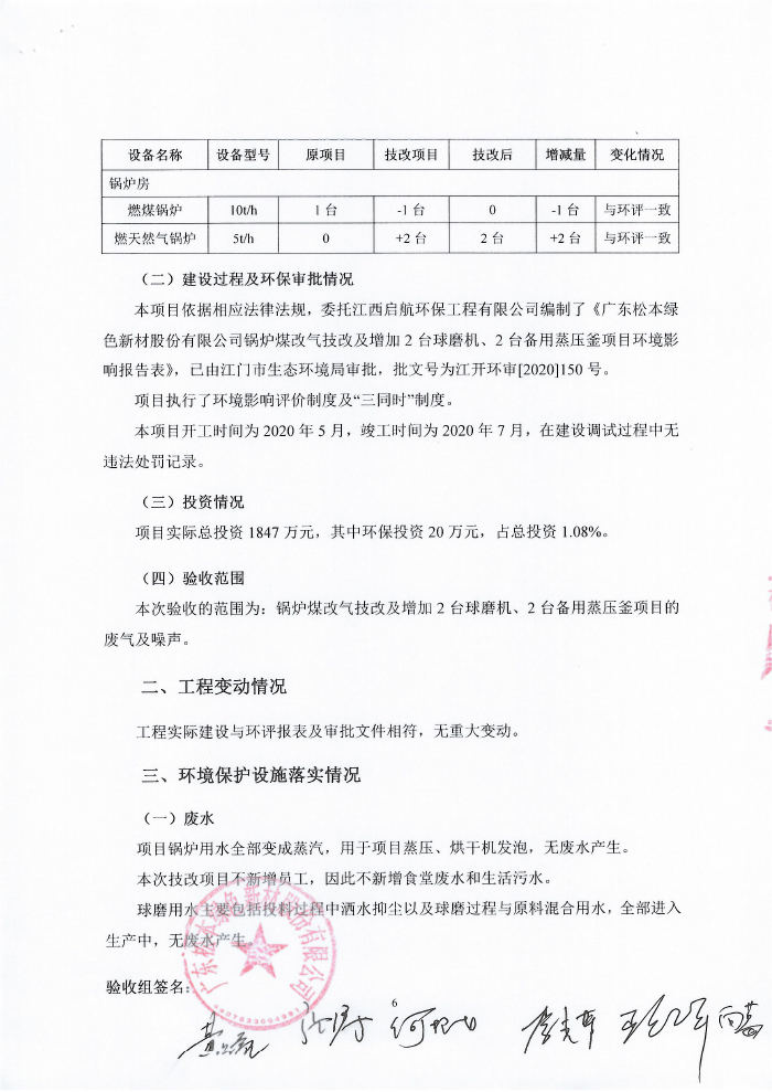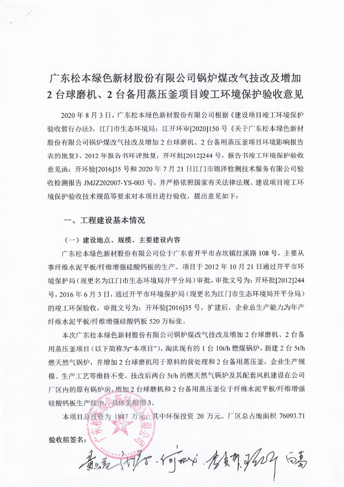 广东松本绿色新材股份有限公司锅炉煤改气技改及增加2台球磨机、2台备用蒸压釜项目验收意见