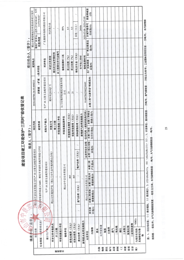 下一条:鹤山市中景实业有限公司年产10万套五金配件建设项目竣工环保验收意见