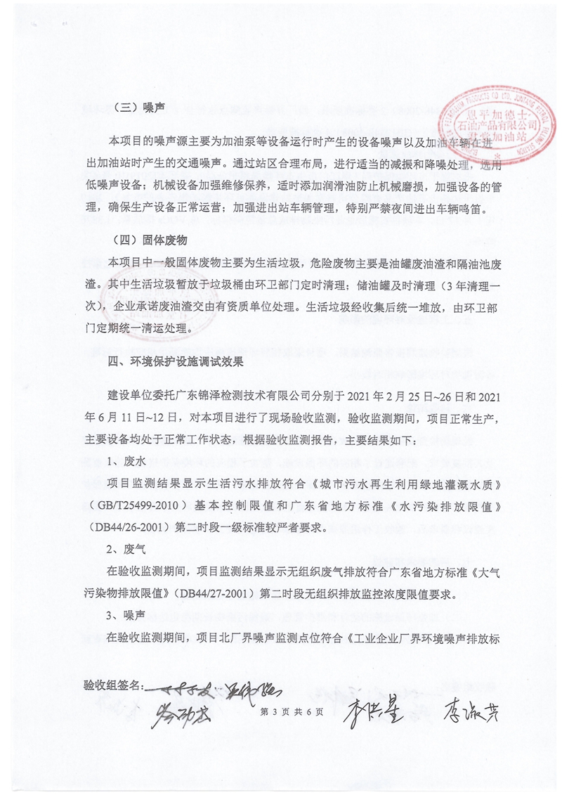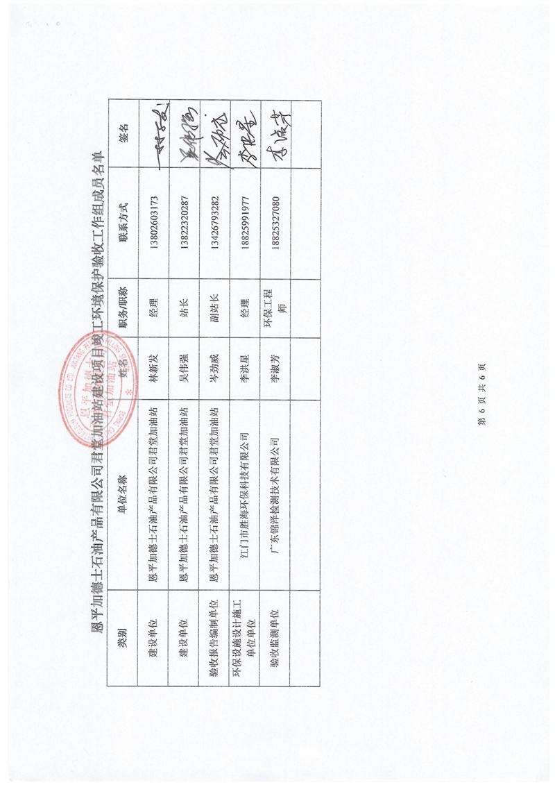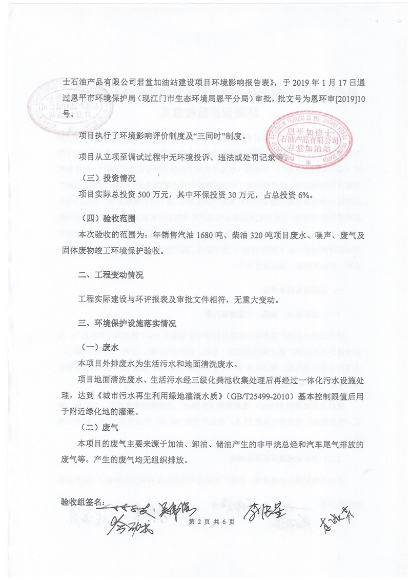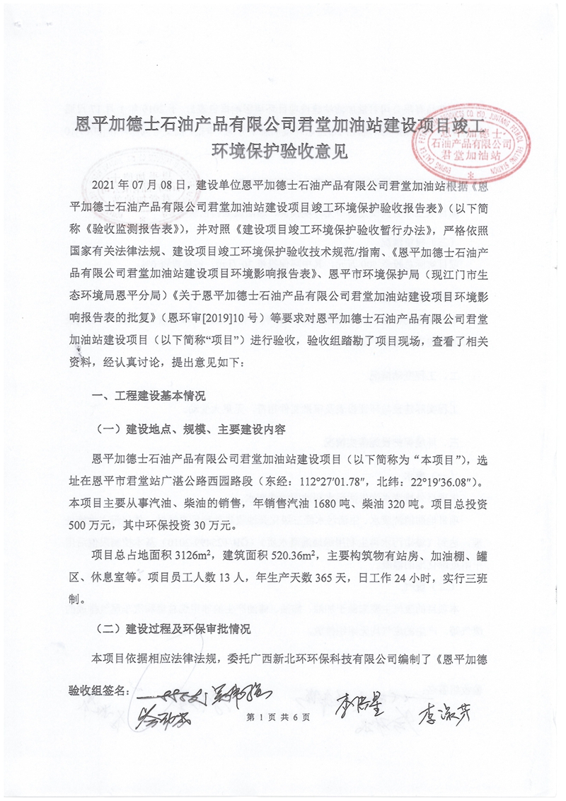 恩平加德士石油产品有限公司君堂加油站建设项目验收意见