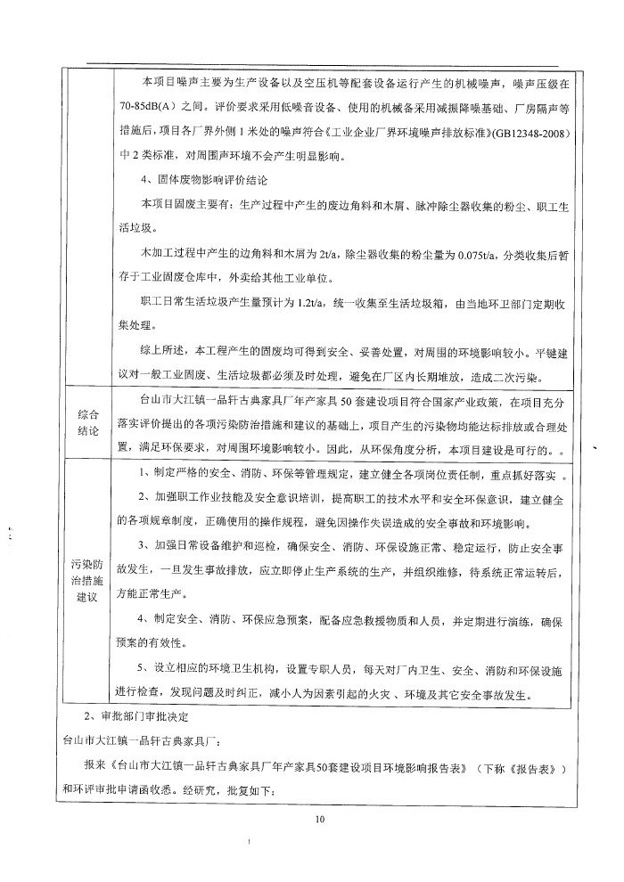 下一条:台山市大江镇一品轩古典家具厂环保竣工验收意见